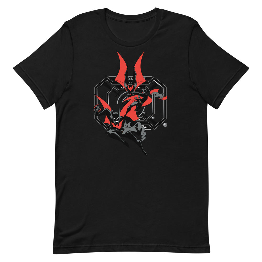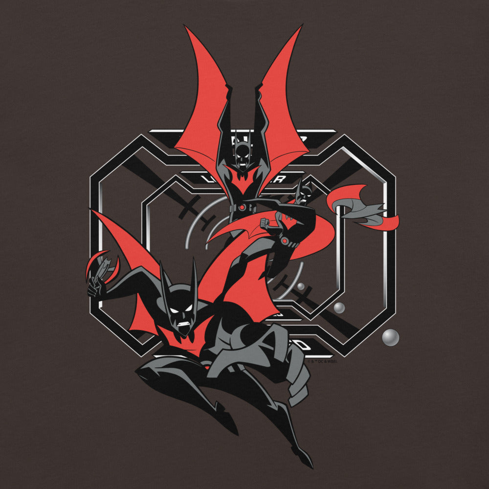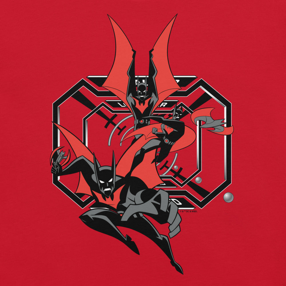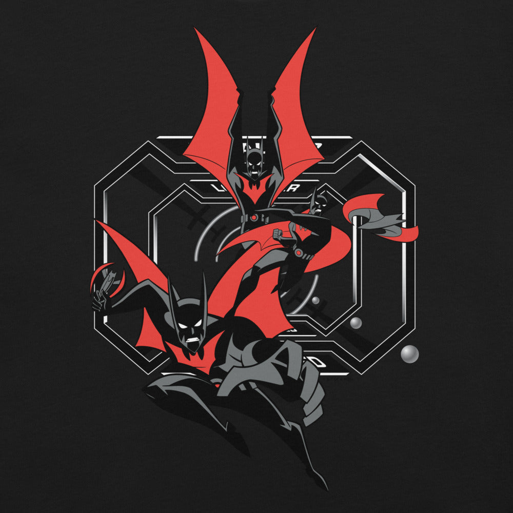 Inspired by Batman Beyond, the Batman of the 21st century leaps into action on this tee.