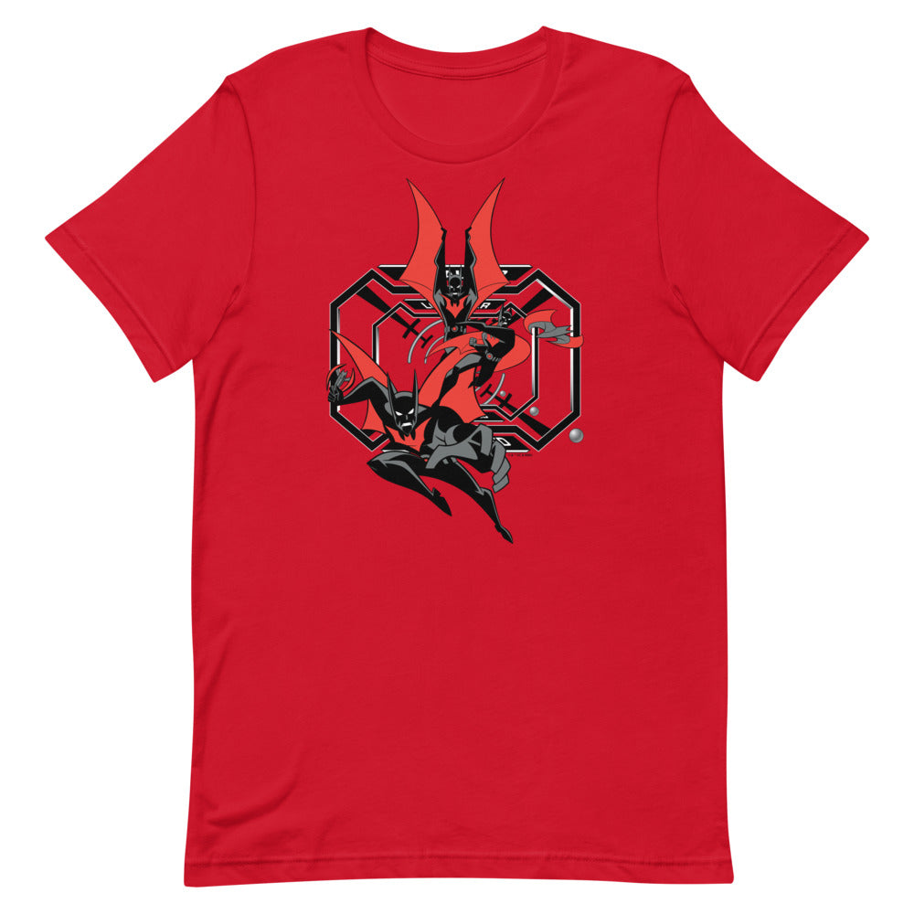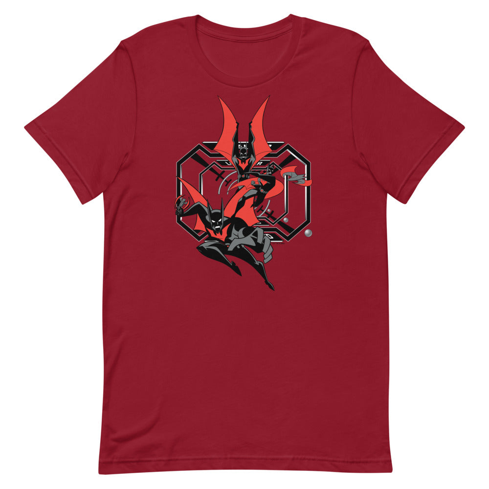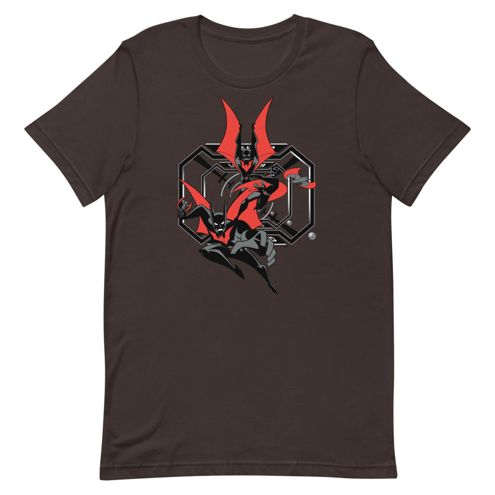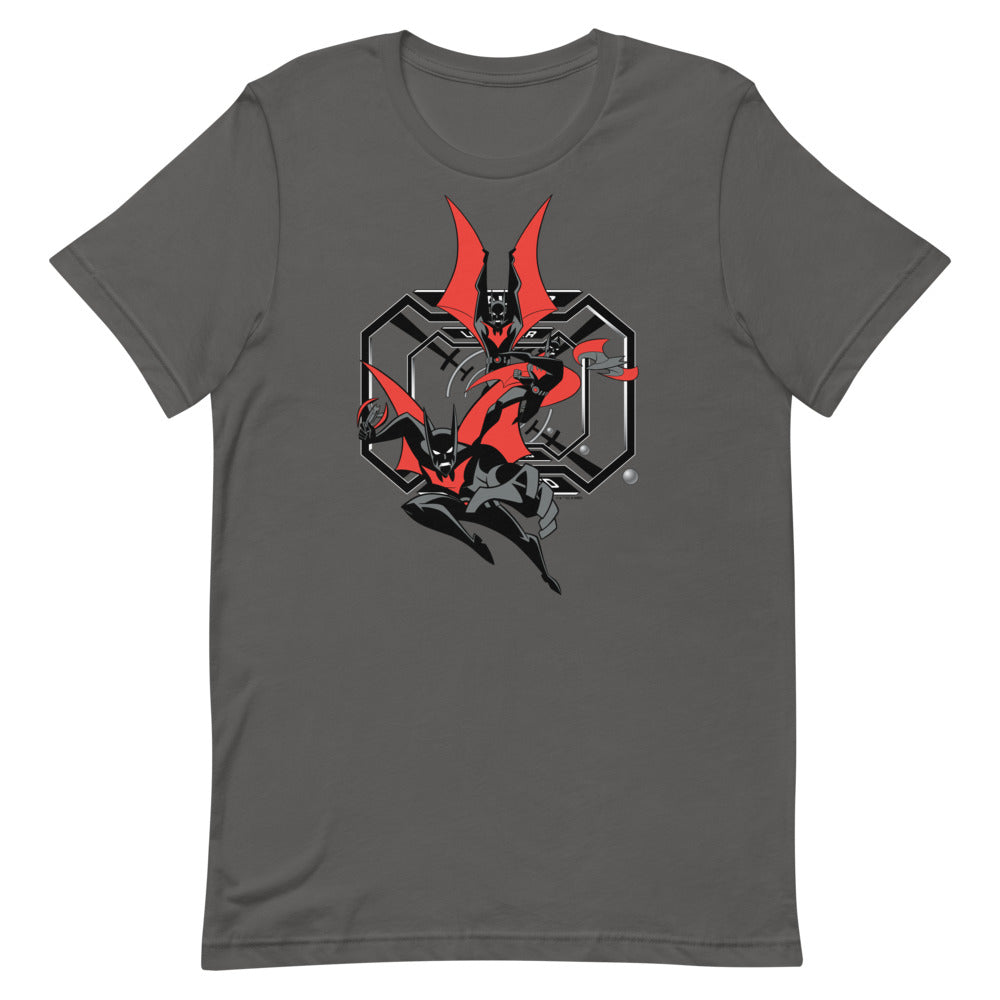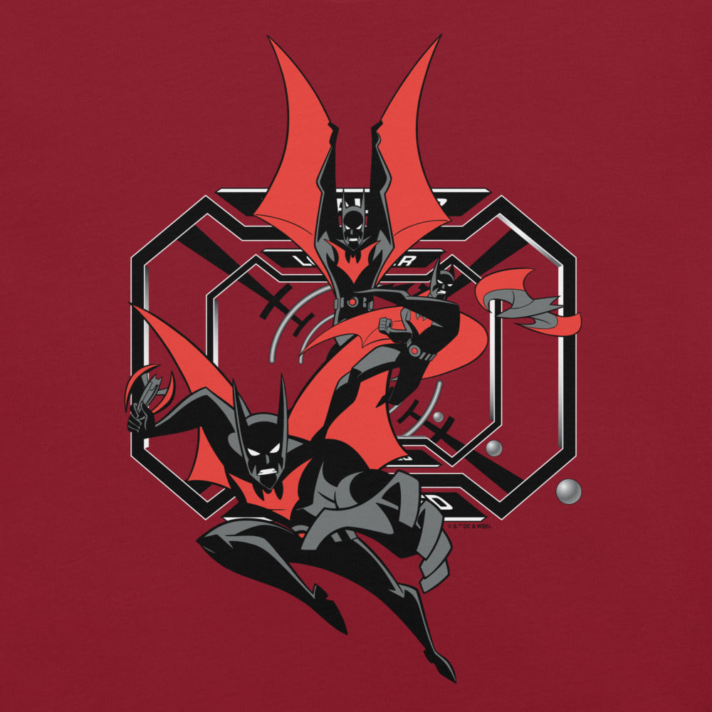 Inspired by Batman Beyond, the Batman of the 21st century leaps into action on this tee.