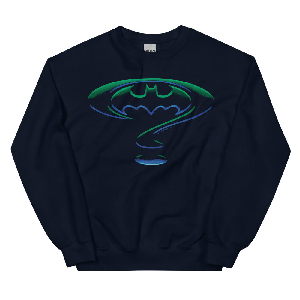 Riddle me this, riddle me that. Solve the greatest riddle of all. Batman Forever logo on cozy sweatshirt.