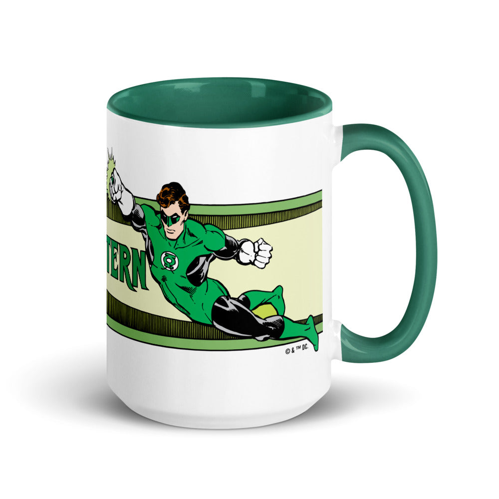Start your day with a jolt of willpower. Featuring Hal Jordan and his Power Battery, this ceramic two-tone mug is the perfect way to "charge" up your morning coffee or tea.