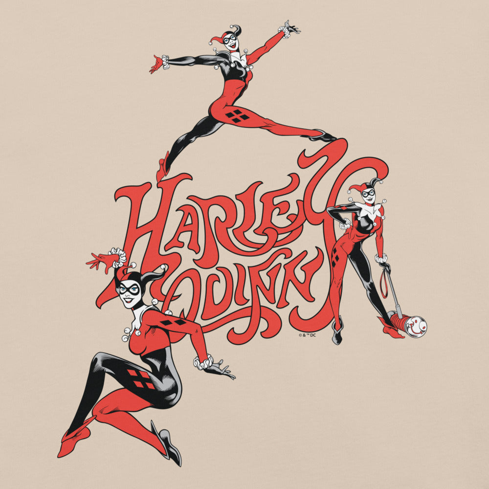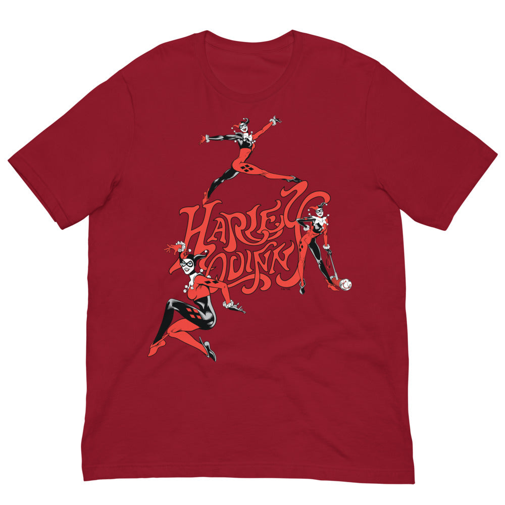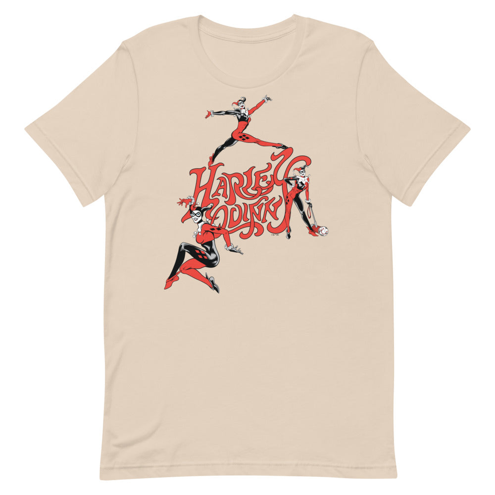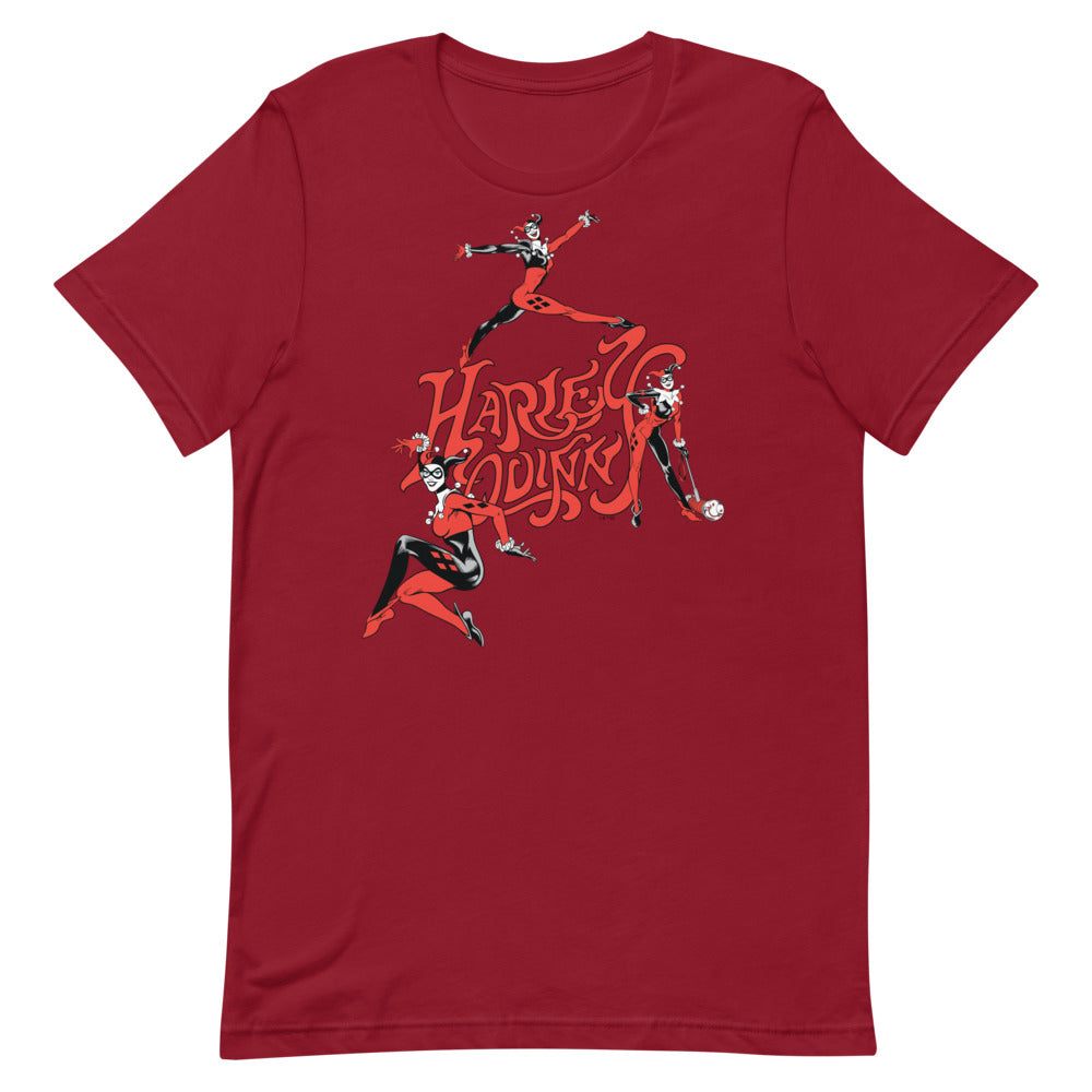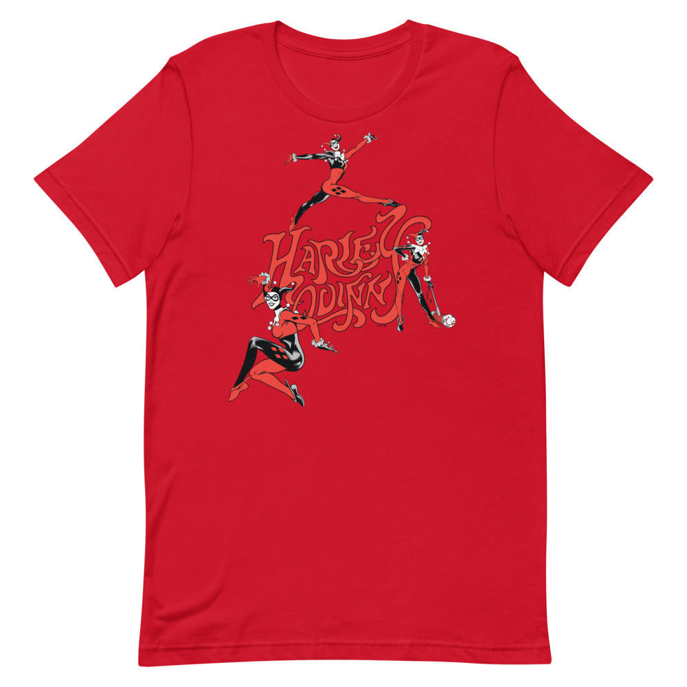 Everybody’s favorite jester and Mistress of Mayhem is on this tee in her classic poses.