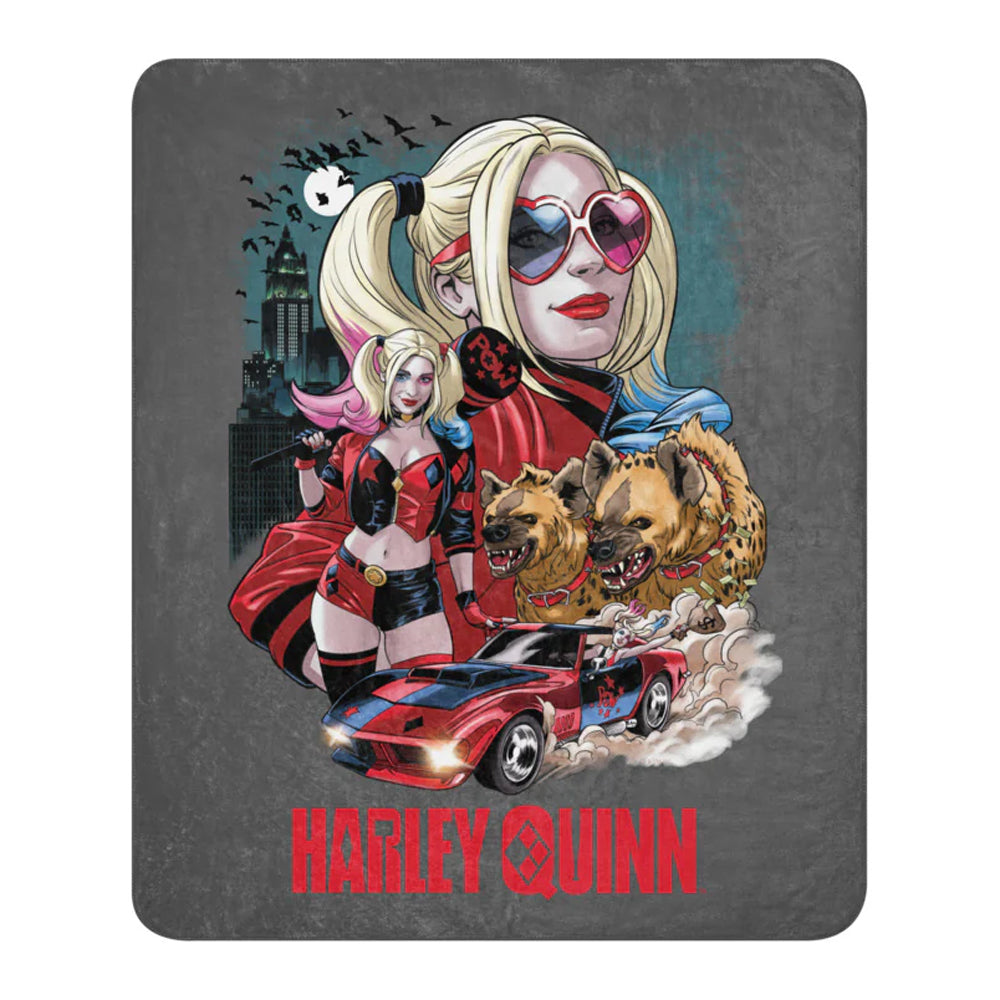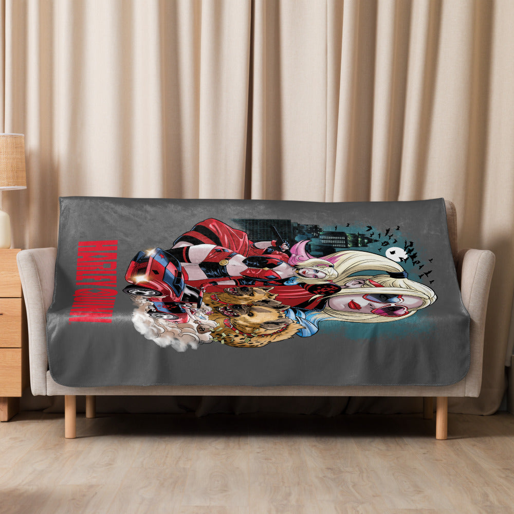 Get a little action with the Maid of Mischief at home. Sherpa blanket with retro action movie poster inspired design featuring top billing for the one and only, Harley Quinn. Soft to the touch with excellent ability to retain warmth and preserve heat.