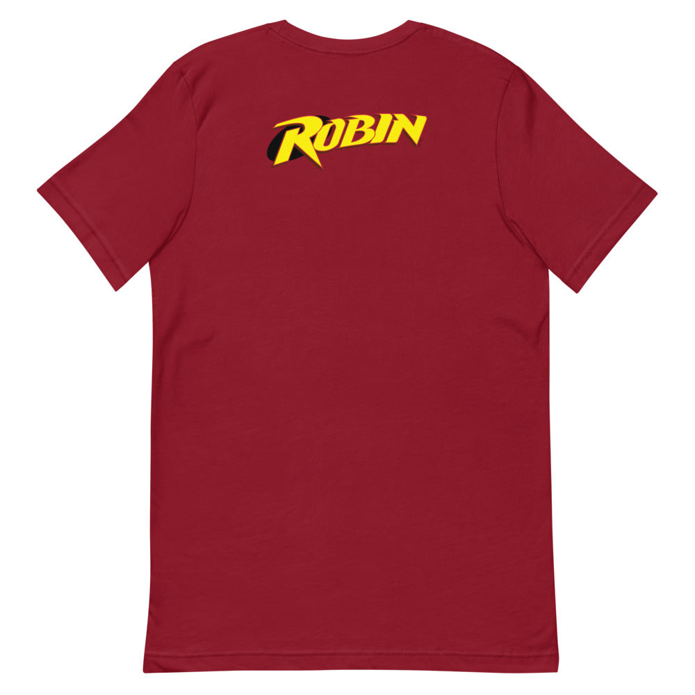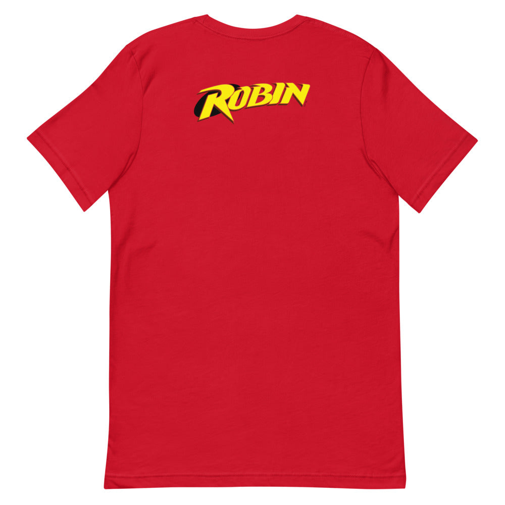 Show sidekick-style in this tee with the ‘90s Robin “R” emblem on left chest.
