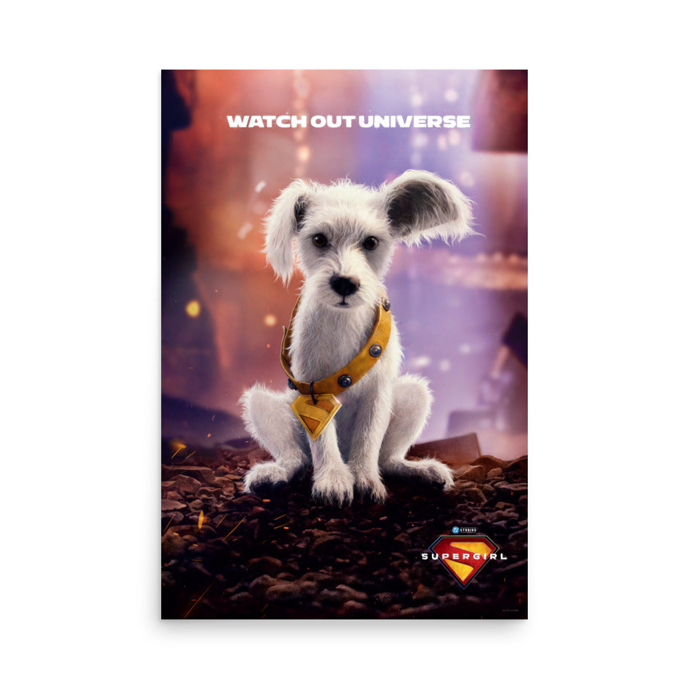 Watch out universe! Puppy Krypto makes his debut in this fingerprint-resistant premium luster paper poster. He might be small, but he’s sure to steal the spotlight while he grows into that collar.