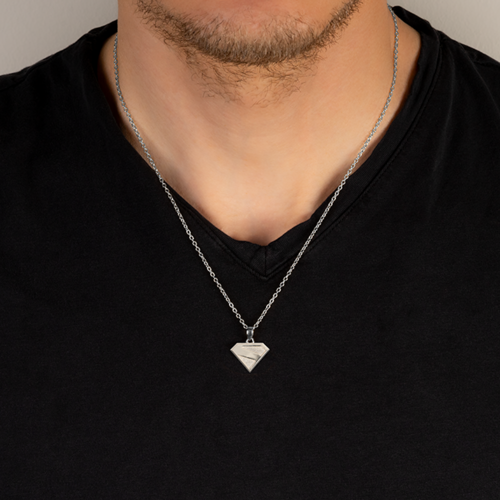An icon of courage for your everyday style. Expertly crafted from high-quality 3D printed 925 Sterling silver, the necklace makes for a heroic statement with its sleek S-Shield based on the 2025 film, Superman. Delivered in a Superman-branded jewelry box with Certificate of Authenticity, it's perfect for gifting or collecting.